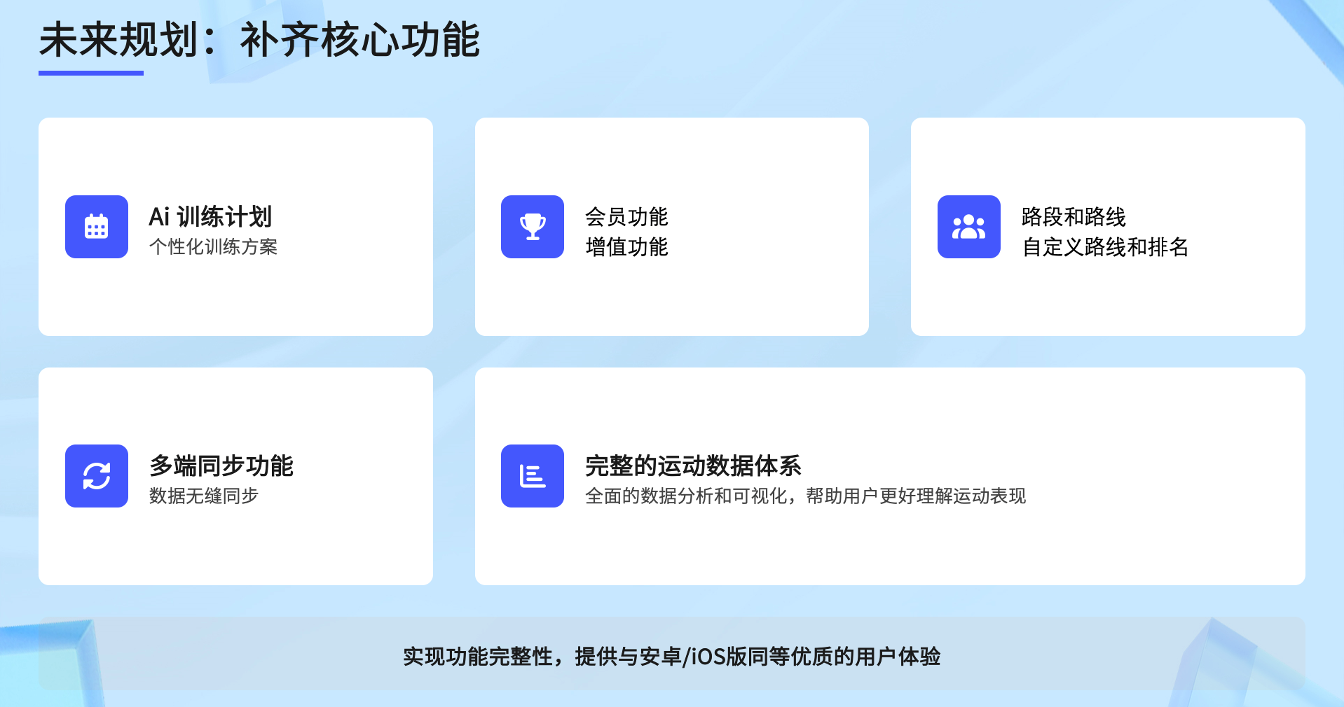 1. 构建核心跑步体验:优先保障跑步记录、实时监测等基础数据的稳定性,打造流畅的跑步记录与分析体验。