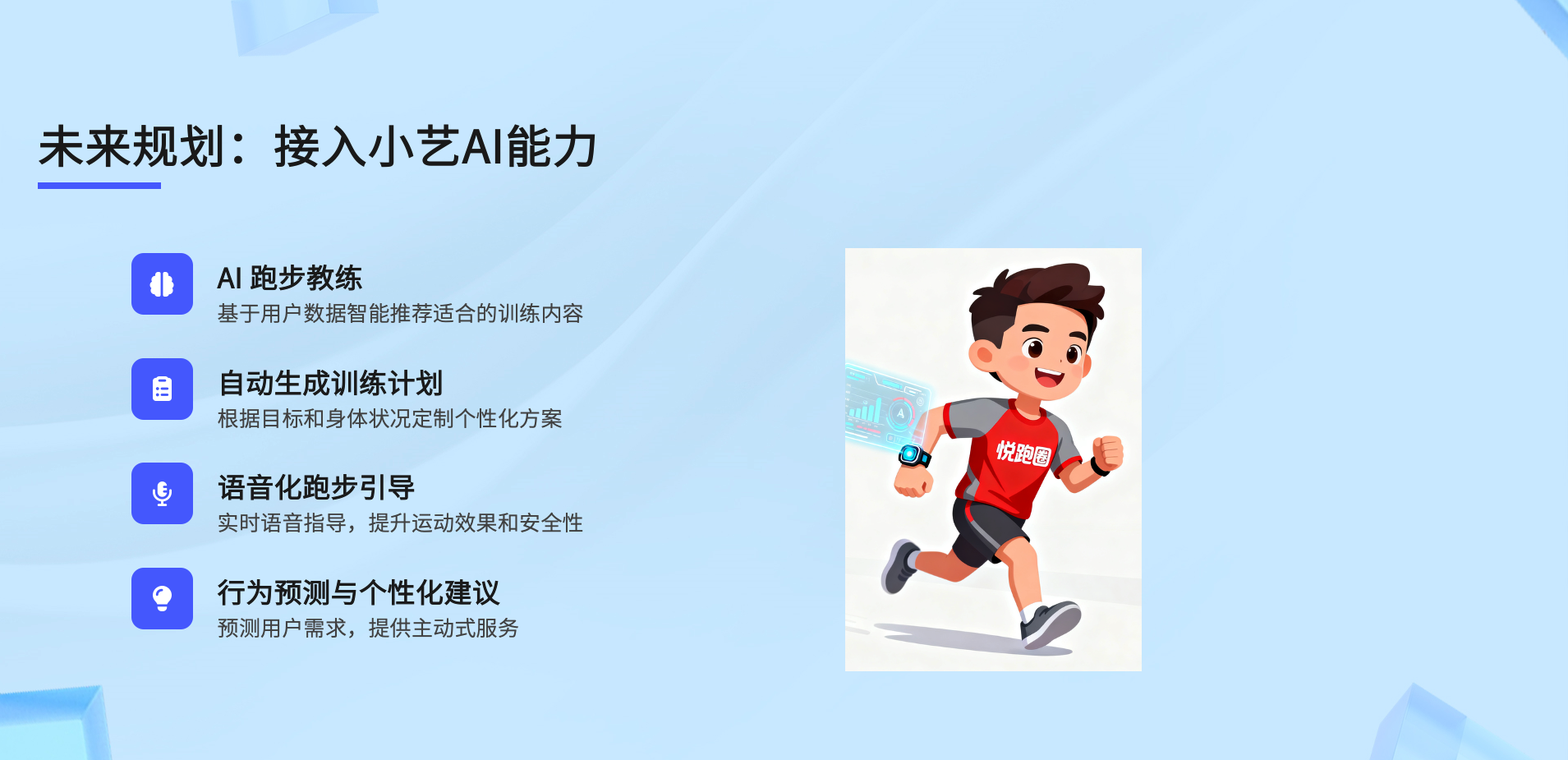 1. AI跑步教练:基于用户数据智能推荐训练内容,自动生成符合用户目标与身体状况的个性化训练计划;